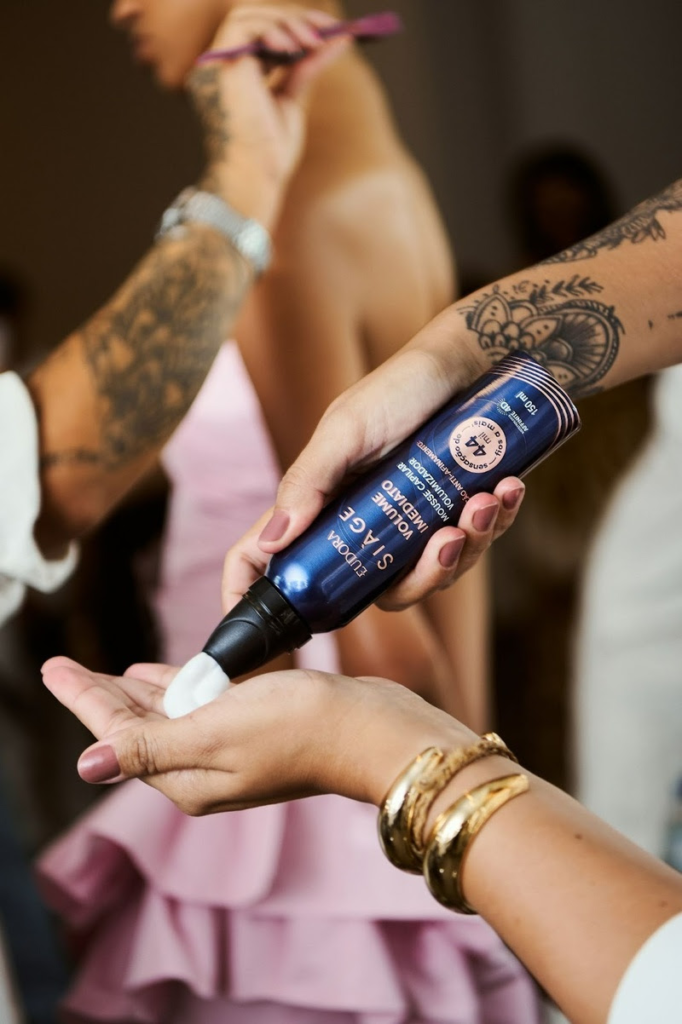 A proposta da beleza, criada por Jake Falchi, destaca fios com textura e presença, em sintonia com a atmosfera do desfile e com a estética da estilista. No backstage, a linha Eudora Siàge Volume Imediato será protagonista na preparação dos cabelos que irão cruzar a passarela.